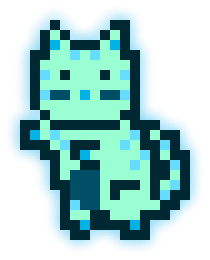 This MoonCat’s litter (MoonCats who share the exact same cyan color (in the 193° hue range) and pattern) has 4 MoonCats in it: