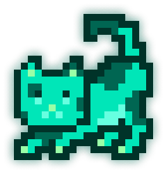 This MoonCat’s litter (MoonCats who share the exact same cyan color (in the 168° hue range) and pattern) has 3 MoonCats in it: