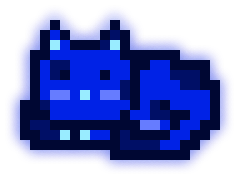 This MoonCat’s litter (MoonCats who share the exact same blue color (in the 231° hue range) and pattern) has 2 MoonCats in it: