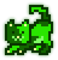 This MoonCat’s litter (MoonCats who share the exact same green color (in the 108° hue range) and pattern) has 3 MoonCats in it: