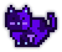 This MoonCat’s litter (MoonCats who share the exact same purple color (in the 265° hue range) and pattern) has 3 MoonCats in it: