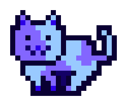 This MoonCat’s litter (MoonCats who share the exact same blue color (in the 251° hue range) and pattern) has 3 MoonCats in it: