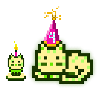 This MoonCat’s litter (MoonCats who share the exact same chartreuse color (in the 92° hue range) and pattern) has 2 MoonCats in it: