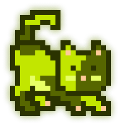 This MoonCat’s litter (MoonCats who share the exact same yellow color (in the 69° hue range) and pattern) has 5 MoonCats in it: