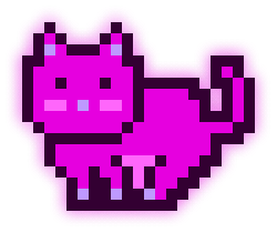 This MoonCat’s litter (MoonCats who share the exact same magenta color (in the 301° hue range) and pattern) has 3 MoonCats in it: