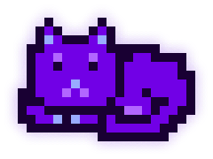 This MoonCat’s litter (MoonCats who share the exact same purple color (in the 269° hue range) and pattern) has 3 MoonCats in it:
