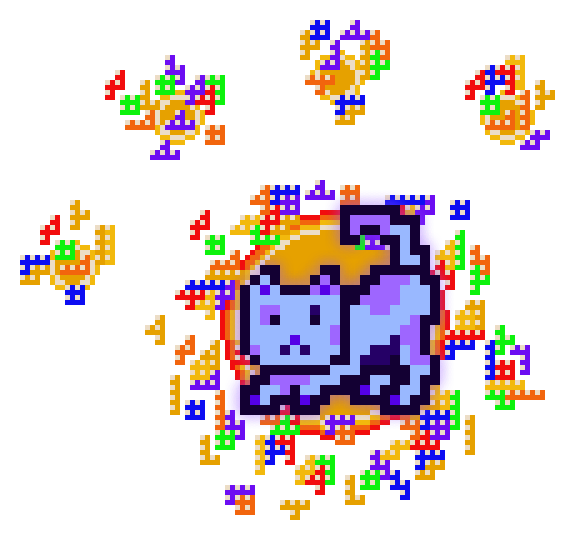 This MoonCat has an identifier of 0x009ba069ff. This hexadecimal number is a bit like DNA in that it contains compressed information about this MoonCat’s basic traits (color, facing, epression, pattern, and pose). Other traits have been gleaned by this MoonCat over time, as they and their human owner leave their mark on the blockchain.