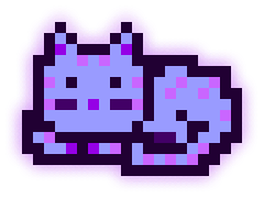 This MoonCat’s litter (MoonCats who share the exact same purple color (in the 278° hue range) and pattern) has 3 MoonCats in it: