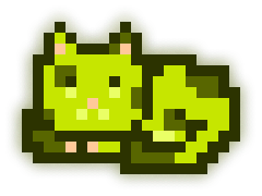 This MoonCat’s litter (MoonCats who share the exact same yellow color (in the 68° hue range) and pattern) has 3 MoonCats in it: