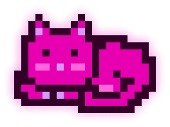This MoonCat’s litter (MoonCats who share the exact same magenta color (in the 314° hue range) and pattern) has 4 MoonCats in it: