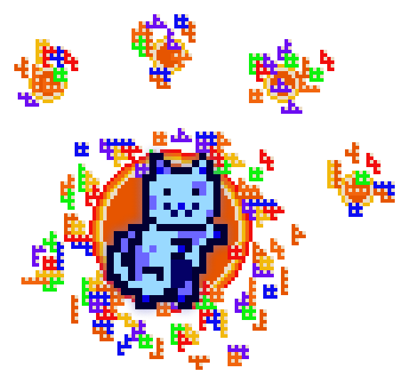 This MoonCat is an only child (they have no “littermates”; MoonCats who have the exact same blue color (in the 242° hue range) and pattern as them).
