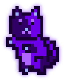 This MoonCat’s litter (MoonCats who share the exact same purple color (in the 268° hue range) and pattern) has 2 MoonCats in it: