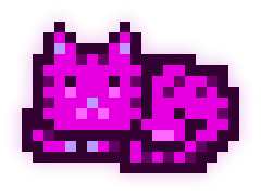 This MoonCat’s litter (MoonCats who share the exact same magenta color (in the 301° hue range) and pattern) has 3 MoonCats in it: