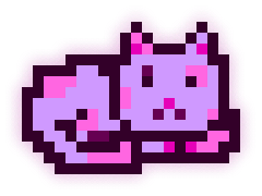 This MoonCat’s litter (MoonCats who share the exact same magenta color (in the 311° hue range) and pattern) has 3 MoonCats in it: