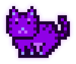 This MoonCat’s litter (MoonCats who share the exact same purple color (in the 277° hue range) and pattern) has 3 MoonCats in it: