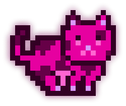 This MoonCat’s litter (MoonCats who share the exact same fuchsia color (in the 318° hue range) and pattern) has 3 MoonCats in it: