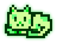 This MoonCat’s litter (MoonCats who share the exact same green color (in the 126° hue range) and pattern) has 5 MoonCats in it: