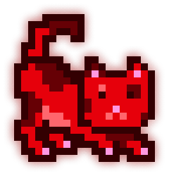 This MoonCat’s litter (MoonCats who share the exact same red color (in the 357° hue range) and pattern) has 4 MoonCats in it: