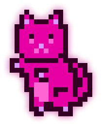 This MoonCat’s litter (MoonCats who share the exact same fuchsia color (in the 317° hue range) and pattern) has 3 MoonCats in it: