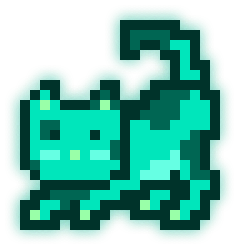 This MoonCat’s litter (MoonCats who share the exact same cyan color (in the 168° hue range) and pattern) has 2 MoonCats in it: