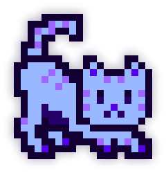 This MoonCat has an identifier of 0x00e79188a1. This hexadecimal number is a bit like DNA in that it contains compressed information about this MoonCat’s basic traits (color, facing, epression, pattern, and pose). Other traits have been gleaned by this MoonCat over time, as they and their human owner leave their mark on the blockchain.