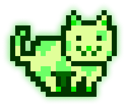 This MoonCat’s litter (MoonCats who share the exact same green color (in the 117° hue range) and pattern) has 2 MoonCats in it: